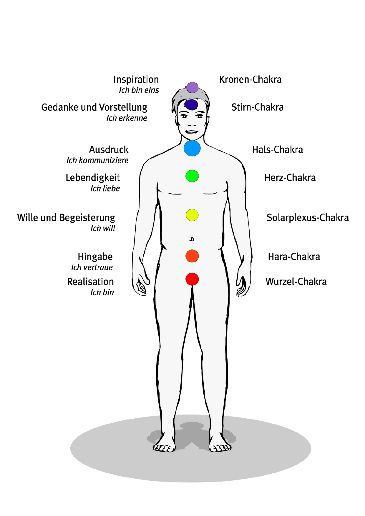 Wählen Sie ein Chakra über die Farbe aus und hören Sie den zugeordneten Vokal: